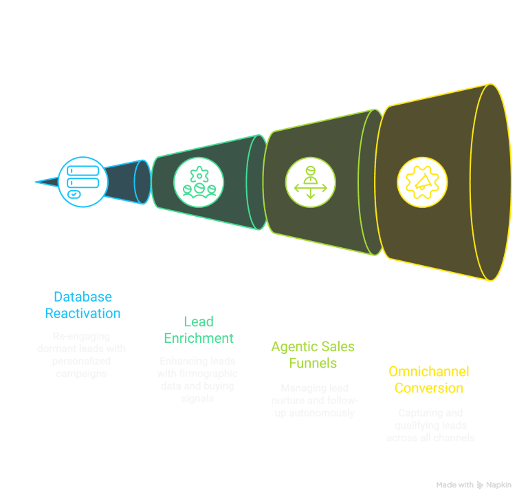 3. Sales Growth Funnels: Agentic AI for 100% Nurture and Accelerated Funnels. The gap between inquiry and conversation is where most deals die. Our Agentic AI system manages 100% of the lead nurturing and follow-up process. It engages prospects with timely, relevant, and persistent communication, answering initial questions and guiding them through the consideration phase. This cuts the time from inquiry to a booked sales conversation from weeks to mere days, dramatically increasing conversion rates.