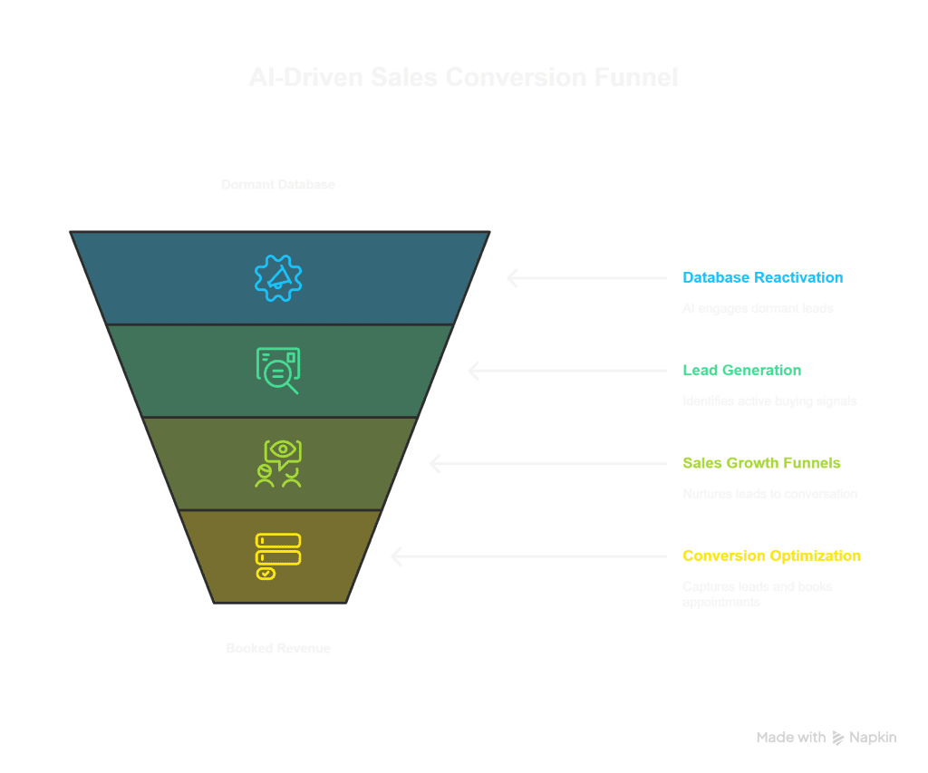 1. Database Reactivation: AI Converts 100% of Your Dormant Database to Qualified Bookings. Your largest untapped asset is your existing database of past clients and dormant leads. Our system deploys autonomous AI agents to engage 100% of these contacts with personalized, multi-touch reactivation campaigns. It intelligently identifies signs of renewed interest and converts them into confirmed, qualified appointments booked instantly into your team’s calendar.